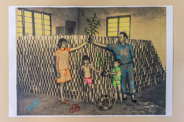 As imagens brotam de intervenções gráficas, montagens e costuras em materiais de arquivos que passaram por tratamentos lúdicos, diálogos e reflexões com transeuntes no centro de Pelotas/RS.